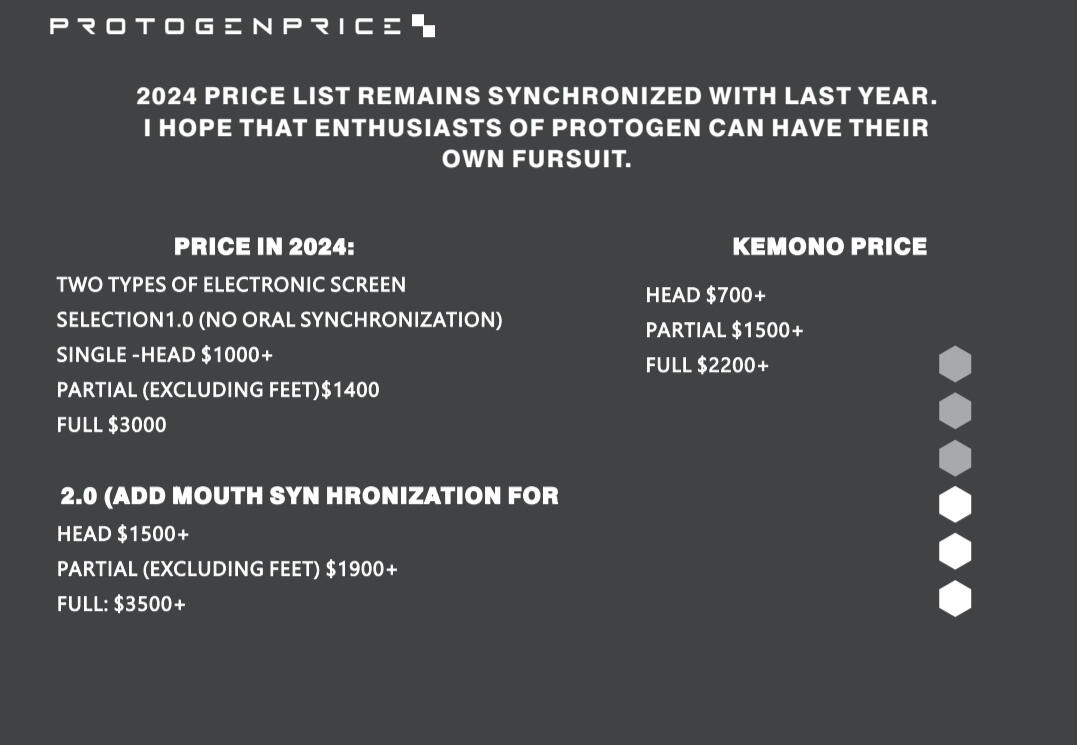 I hope that enthusiasts of protogen can have their own fursuit.Price in 2024: